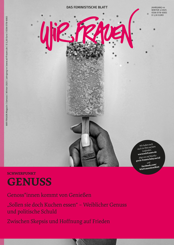 Für diesen Schwerpunkt hat Leo Paulsen zur Geschichte des berühmten Satzes „Wenn sie kein Brot haben, dann sollen sie doch Kuchen essen“ recherchiert. Annegret Kunde plädiert dafür, genießend Kraft zu tanken, um für öffentlichen Luxus, der allen zuteil wird, besser streiten zu können. Die Autorin Giulia Alvarez-Katz kann ihren Orgasmus schmecken – ein Anlass für sie, auch über Beschämung und Scham nachzudenken. Inspiration fand sie u.a. bei adrienne maree brown.
